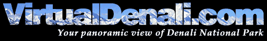 Soon this site will feature Virtual Reality panoramic images of Denali National Park and the surrounding area. If you are unfamiliar with this type of online photography (also known as Immersive Imaging), check back soon for a whole new experience! These panoramas will be interactive, meaning that viewers can use their mouse to navigate within the panorama itself--choosing the direction of their view (left, right, up or down), and zooming in to see detail or zooming out to see the whole picture. Some will be cubic, meaning you can view the ground and then pan up to see the clouds! Others will offer a much wider view (approximately 180 degrees) that no single photograph can offer. And of course, all featuring Alaska's premiere National Park!